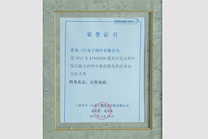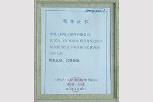 青島三巨電子部件有限公司在三星電子(山東)數(shù)碼打印機(jī)有限公司舉辦的KINGBIRD模具開(kāi)發(fā)過(guò)程中綜合能力評(píng)價(jià)獲得模具類(lèi)優(yōu)秀協(xié)力社大獎(jiǎng);